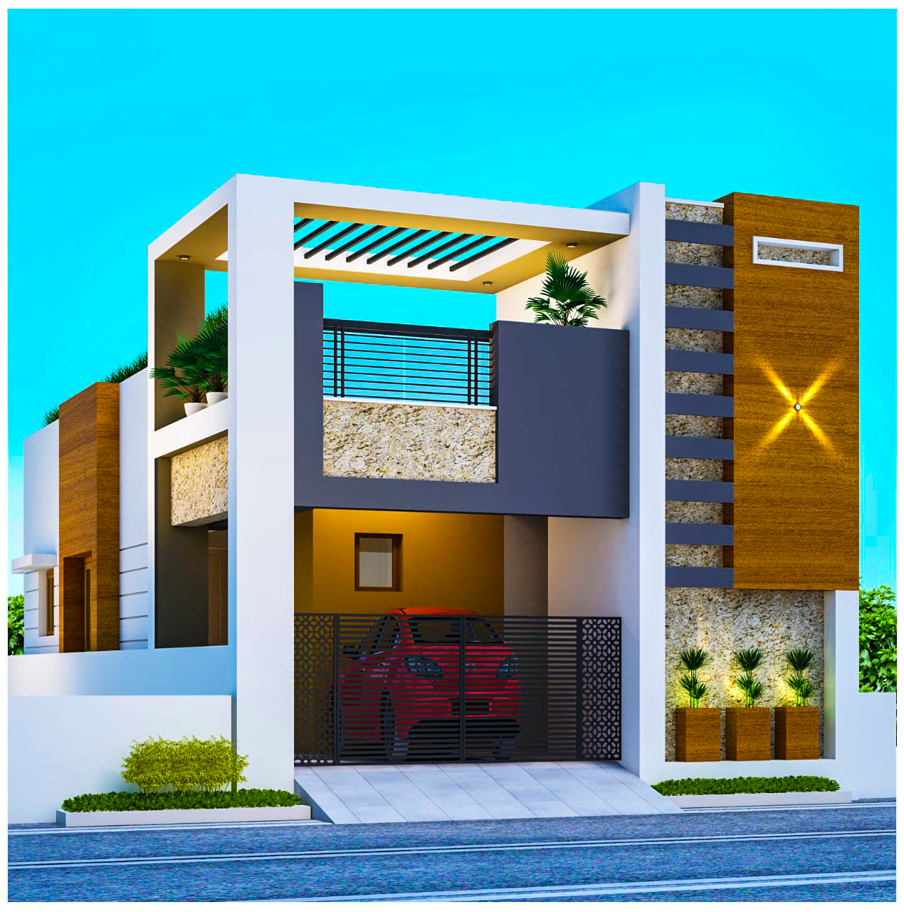 - Contemporary architectural design with Ground + First Floor + Terrace.